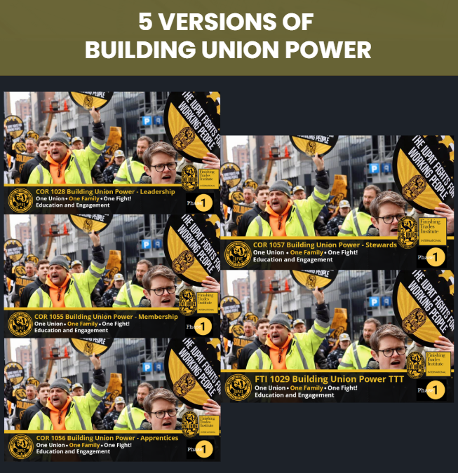 - Five versions of the course – Train-the-Trainer, Membership, Leadership, Apprentices, and Stewards